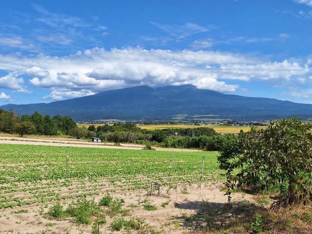 定点撮影1:「鳥海山と北端の庄内平野と砂丘畑と柿の木」