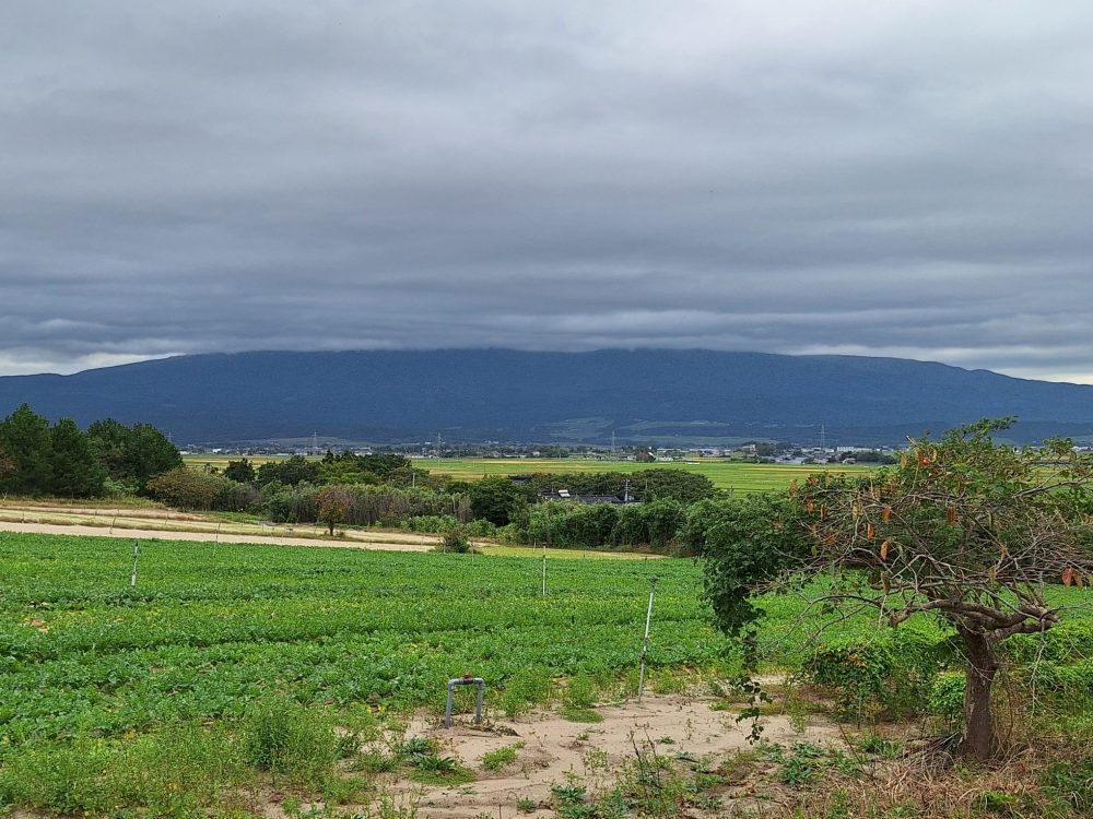 定点撮影1:「鳥海山と北端の庄内平野と砂丘畑と柿の木」