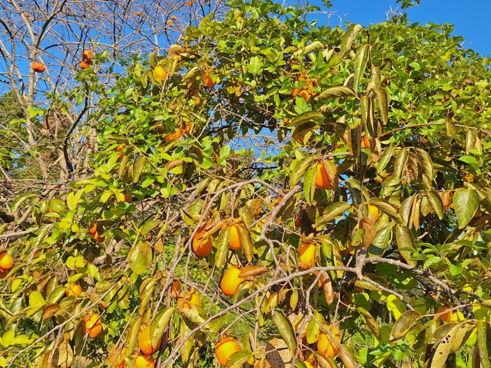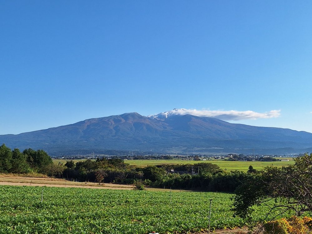 定点撮影1:「鳥海山と北端の庄内平野と砂丘畑と柿の木」(朝8:00)