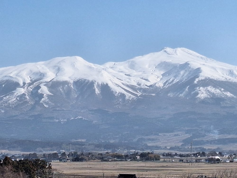 定点撮影1:「鳥海山と北端の庄内平野と砂丘畑と柿の木」